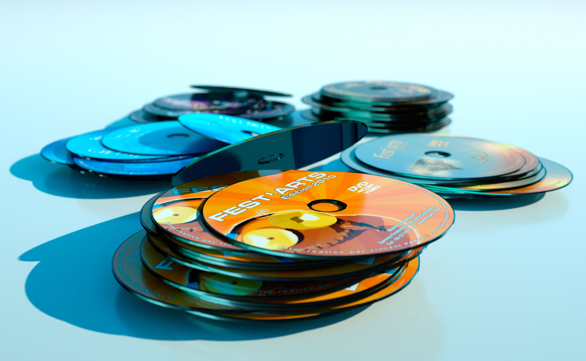 Also maybe not show the underneath of the disks. Reproducing the isotropic specular look of CD's and DVD?'s is no easy thing. Not sure if it's possible with Octane.