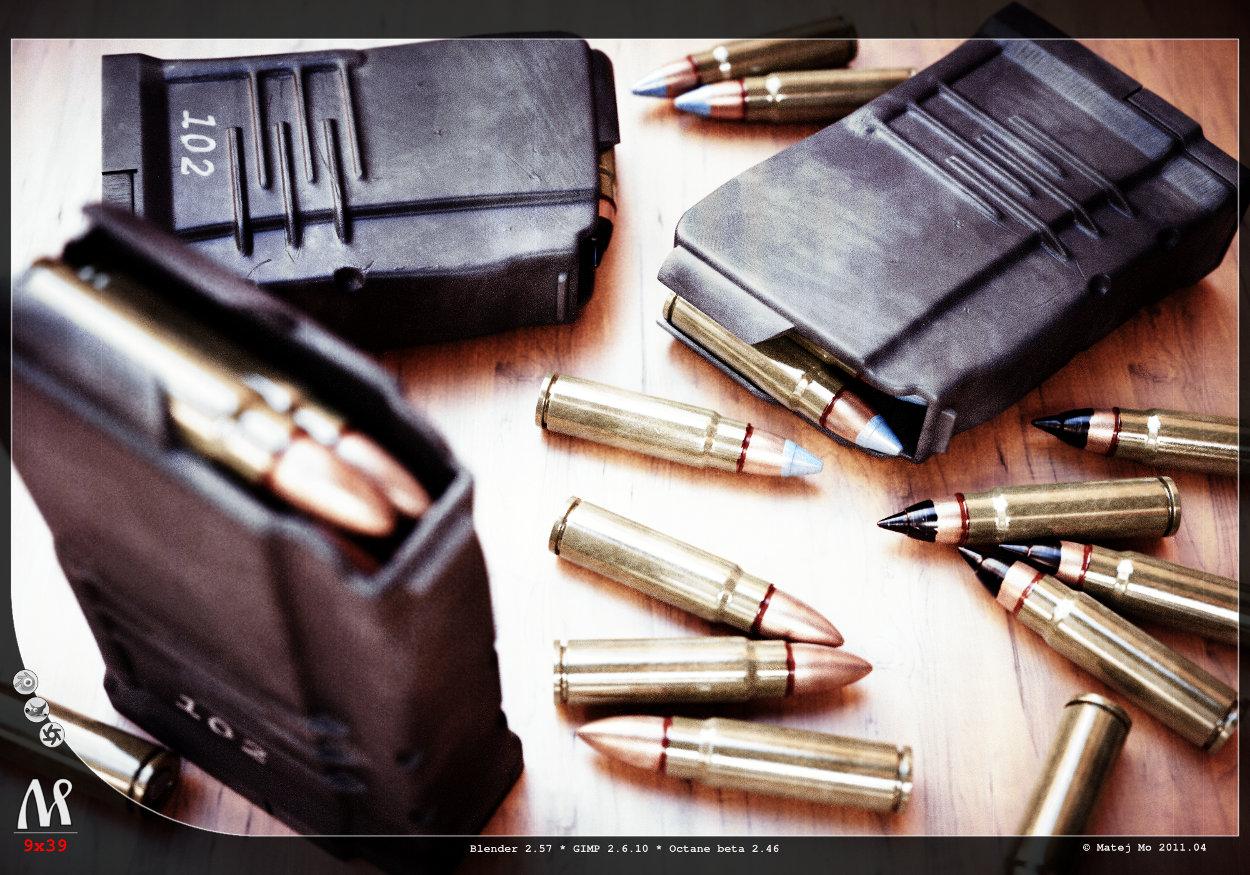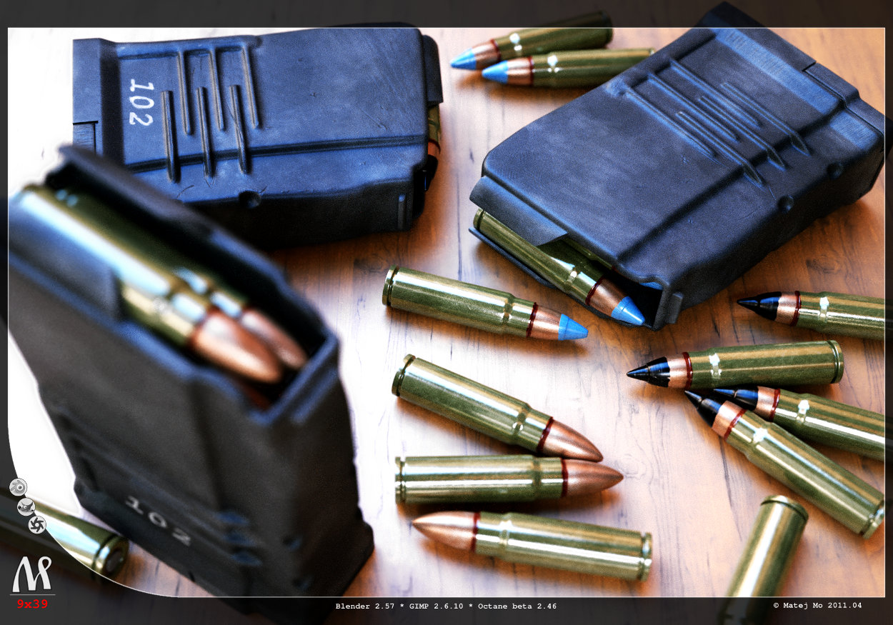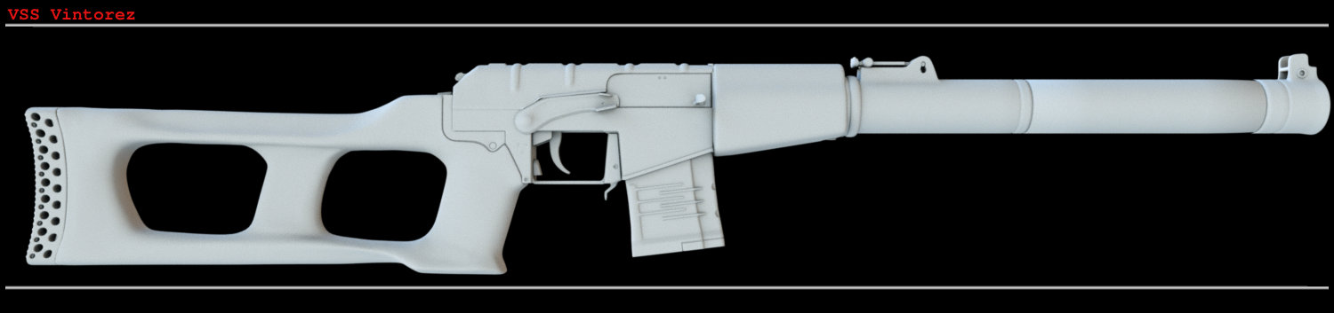 * The rifle itself, without the scope. Clay render * 9x39mm subsonic sniper cartridges for suppressed rifles. Normal & armor-piercing bullet variants. * VSS ten rounds magazine. Second render is degraded on purpose. * Standard Soviet PSO-1 scope