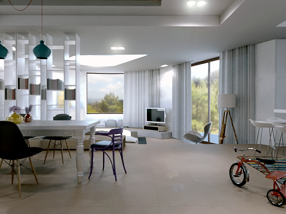 It looks great! But I do have to mention that the windows look off. It seems that octanes alpha channels are slightly blurred due to over sampling. The best example of that is on the left side of the lamp on the right by the window, it looks like a soft white outline.