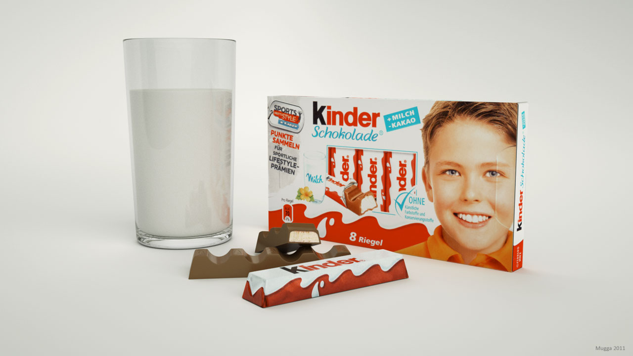 The half cutted chocolate bar needs some further tweaking and the milk material is not what i want. I used a mix material node with a specular and a diffuse material for the milk. The diffuse material emits a little bit of light.