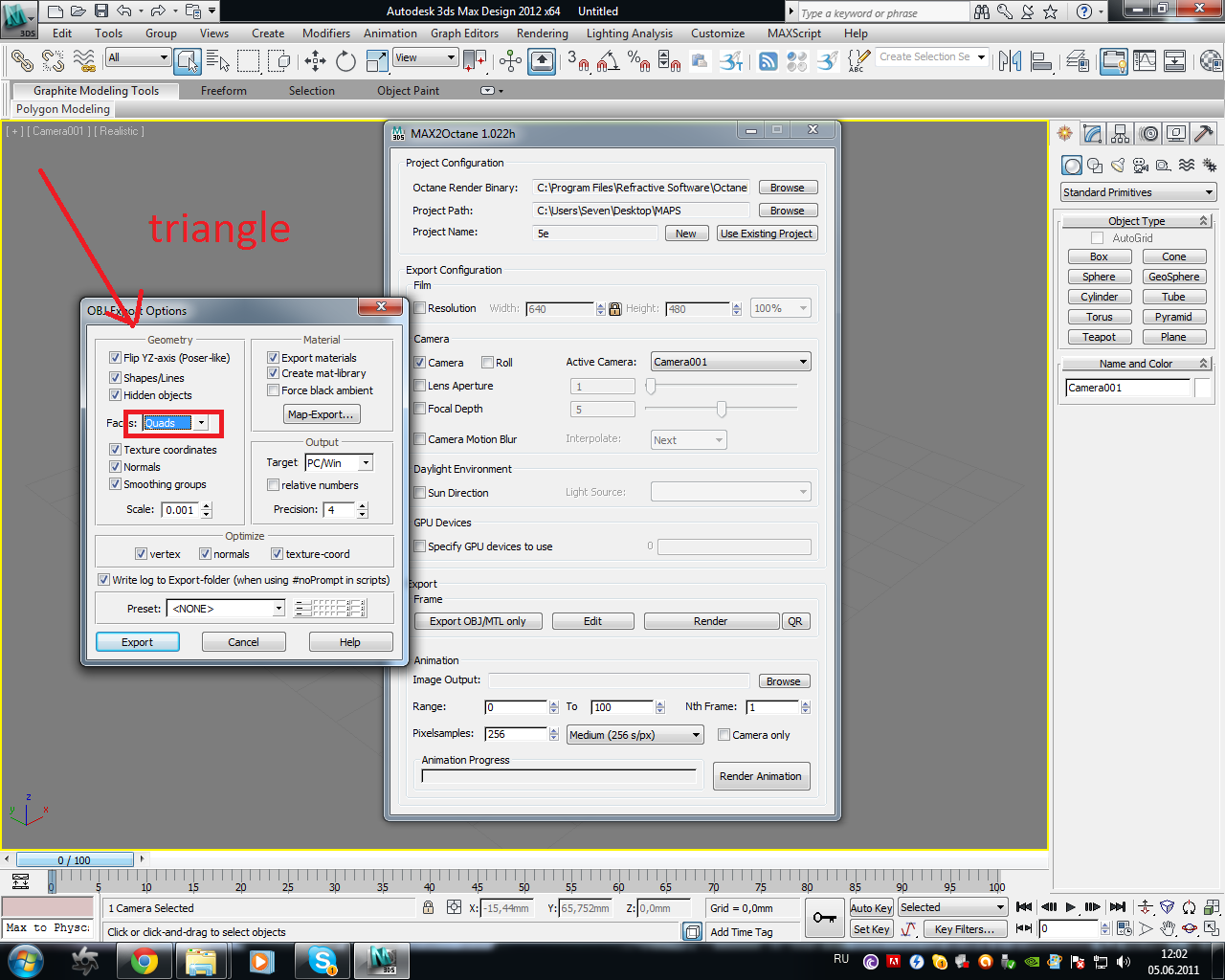 I experimented with a scene of 99 mb and triangles loaded in 4.10 seconds with cuads loaded in 2.57 seconds and 2.55 seconds polygons in this last option in the render polygons for errors, take into account that this configuration can be effective for scenes with simple polygons, but unfortunately have to use when you need presicion triangles rather than speed. I hope a version comes out soon integrated into the 3d studio because octane is great for rendering images, but the loading time for an animation makes the final is just slower than vray, or at least they can charge the full timeline and not just a frame.