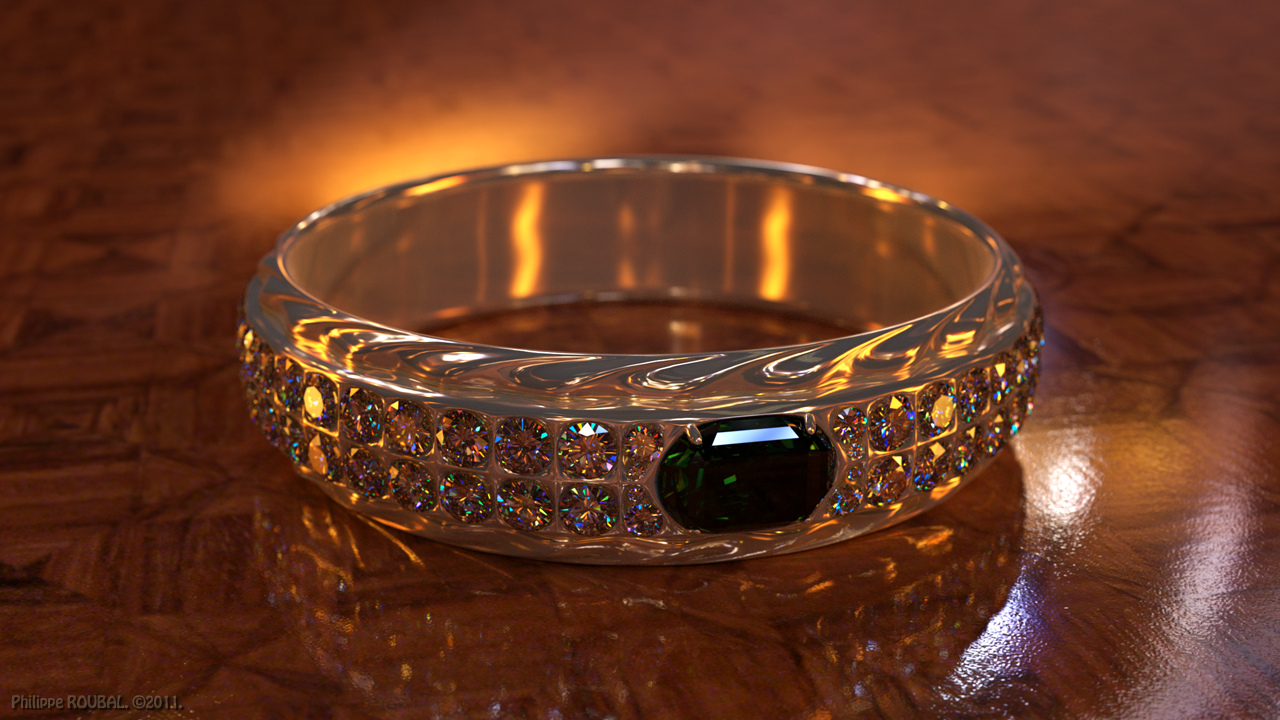 EDIT : You may remember this bracelet. It is one of the very first object that I modelled for rendering with Octane in early 2010. Today I use it for my first trial with dispersion.