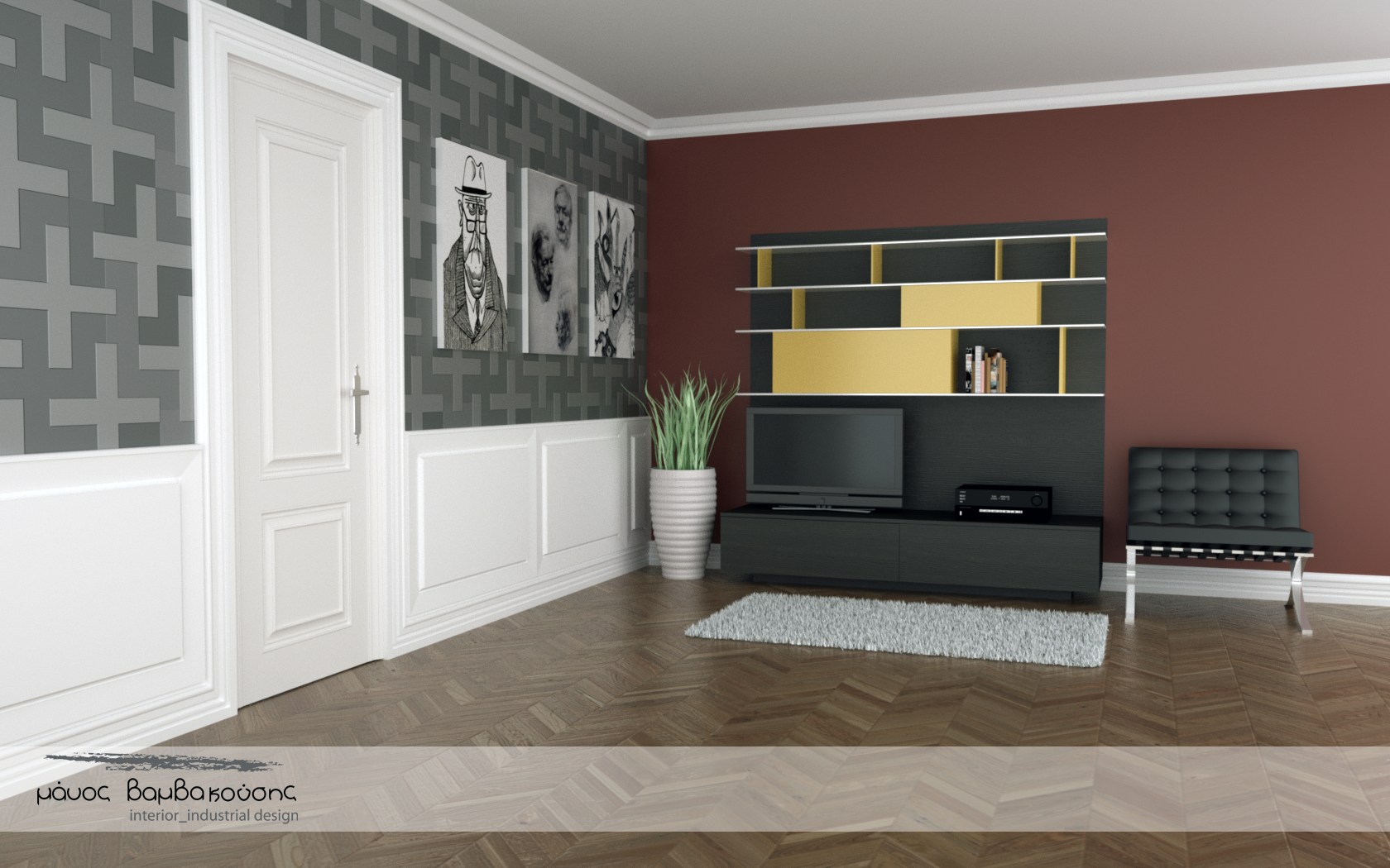 The materials and lighting looks a bit flat.....about the composition, it's very crowded in only one side off the room, it looks like everything is pushed in one corner and the back plate off the TV unit looks a bit on the thin side in relation to the rest off the panels....