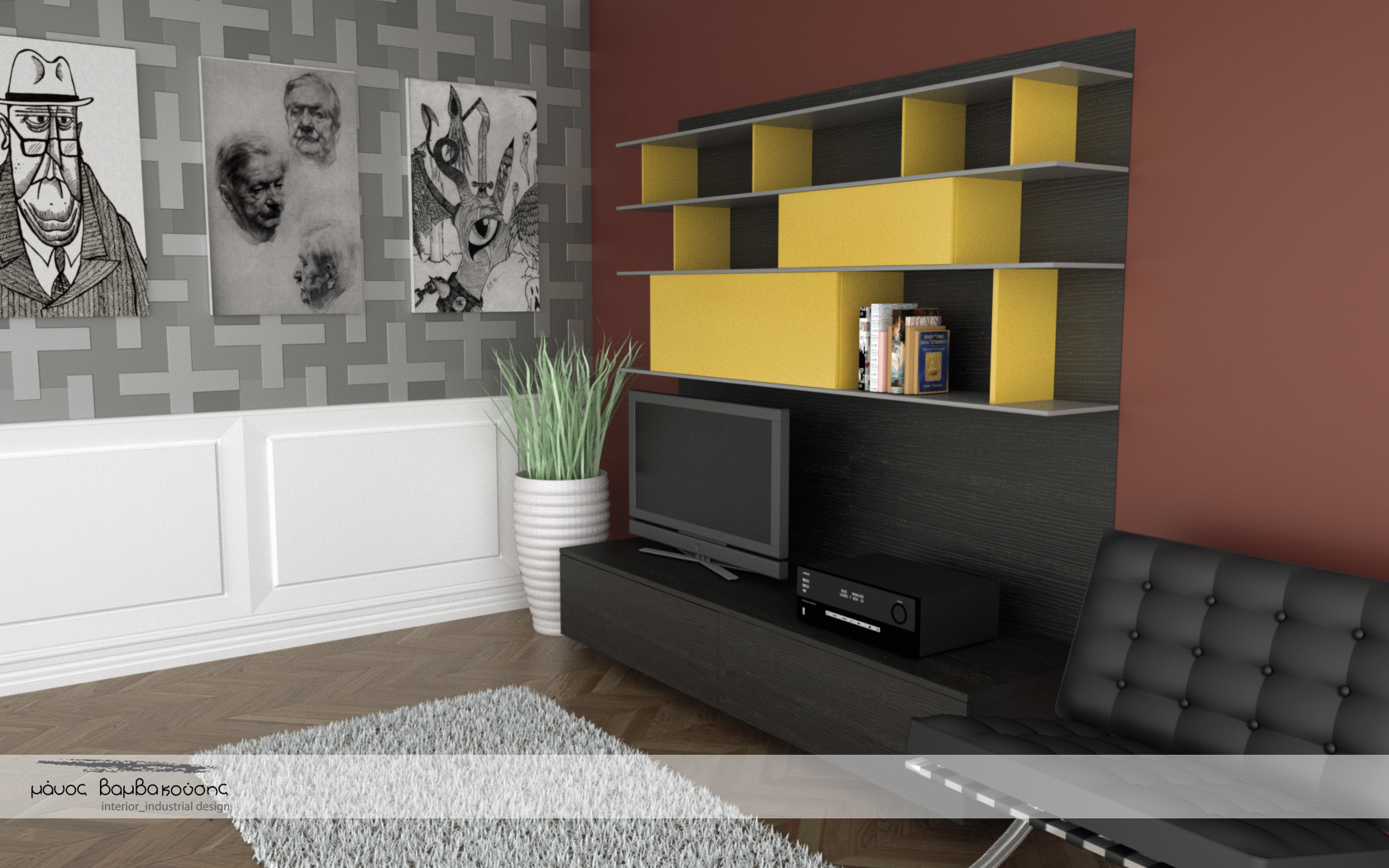 The materials and lighting looks a bit flat.....about the composition, it's very crowded in only one side off the room, it looks like everything is pushed in one corner and the back plate off the TV unit looks a bit on the thin side in relation to the rest off the panels....