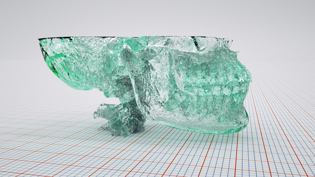 the skull is a 3d reconstruction from a CT 64 (computer tomography) ;)