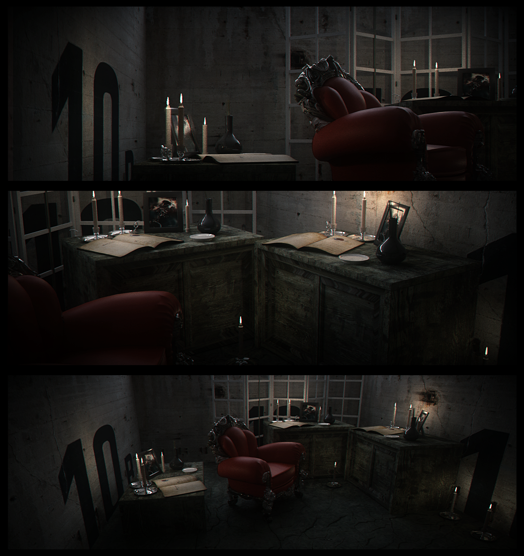 Great start :) . Textures and models are realistic. I like the close up shot of the book design focusing on the apocalypse text that works well in conjunction with the other shots. Some of the uvs on the wood are not correct but everything looks already great. I have this idea which you can try which is try absorption on the wax to see if you can get any interesting results that replicate how a real candle looks.