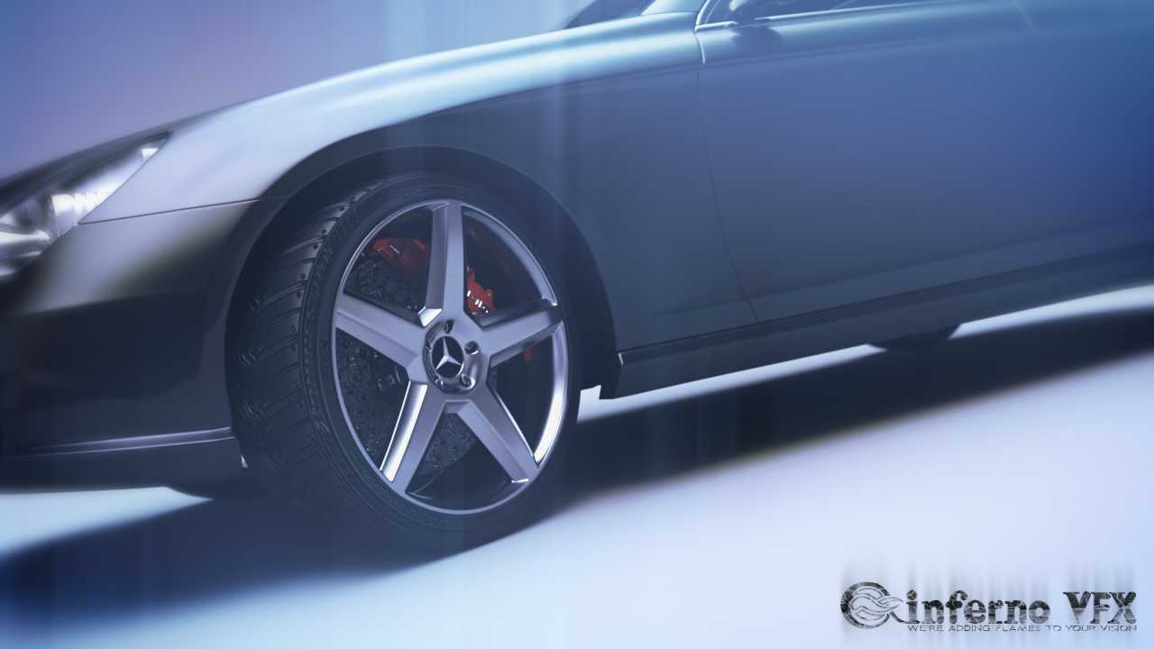 The Car was done in Maya (by me, down to the last bolt), the tire texture sculpted in Zbrush and exported as the normal map, the disc calipers modeled in Maya then decimated from 120.000 polys to 5.000 triangles using Zbrush, all post-processing done in NukeX, render times 5-7 mins. As always, your comments are more than welcome and greatly appreciated so fire away...