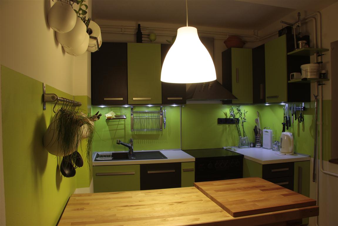 I usually avoid that kind of colours, but lately that shade of green looks really great in combination with anthracite grey colour.. and the kitchens can have a bit of colour, nice and happy, had a nice wibe.. and it's environmentaly friendly since I decided to put most of the lighting with LEDs, well environmentally complient.. actually a few LEDs are battery backuped, for the bottom right cupboard that is always in the dark, lights on small simple automatic switch when you open it.. you can get a lot of ideas when you try to some on your own..