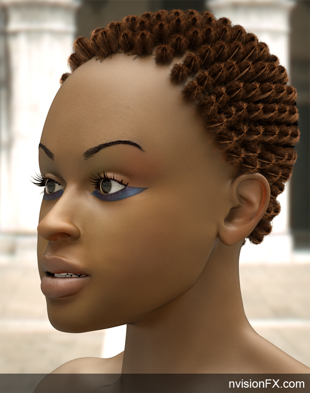 To make the scene complete, I have just added some clip texture planes for the hair.