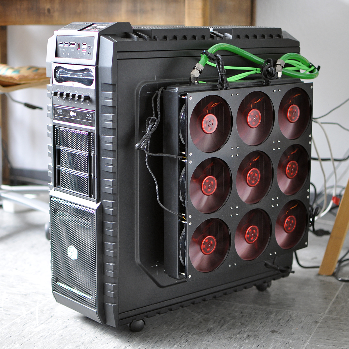 HafX Case with 3 GTX 590s plus a GTX 580 (3GB) for larger scenes.
