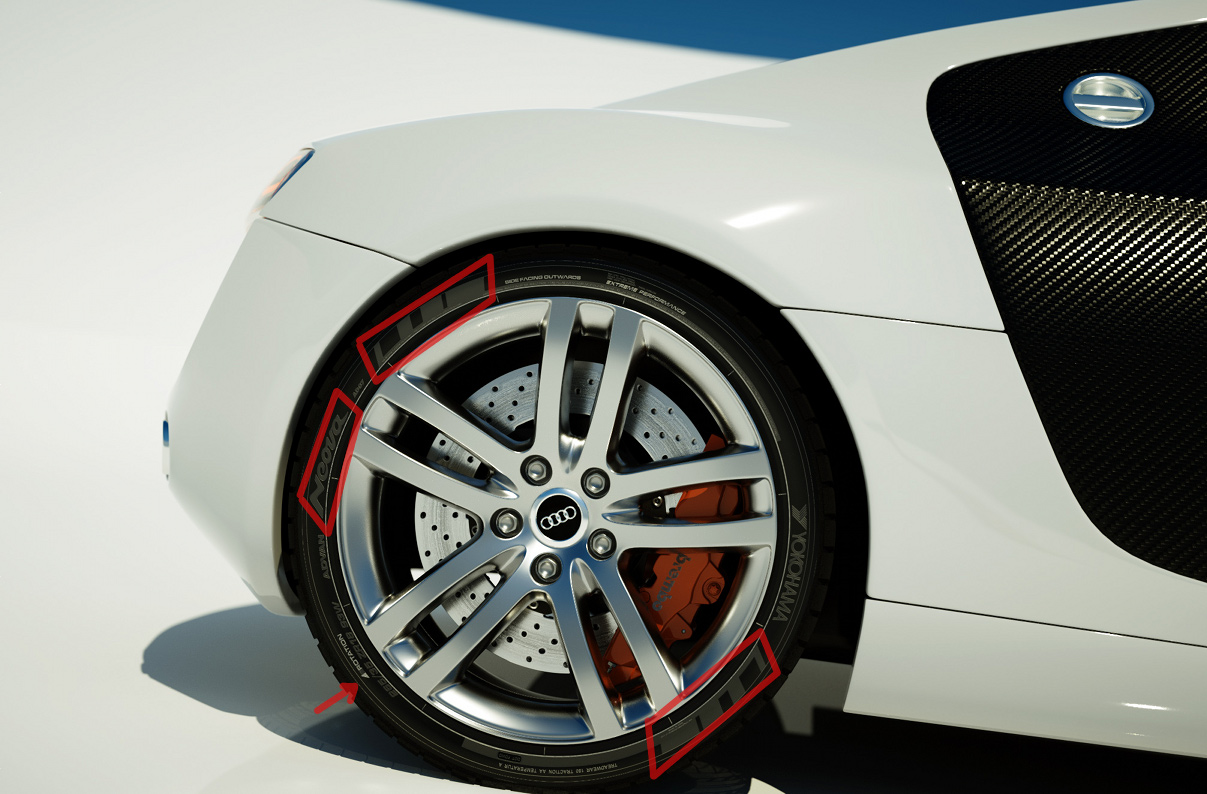 and i must admit i have never checked my real world car if the tires are mounted the right way round. taking into account that they messed up the pressure last time i had a check, i should eventually do that - i drive a us car in europe, and they took the noted "psi" and pumped it to this ammount but in "bar" oO (apparently they didn't notice the missing comma dot because 33 psi equally in bar would have caused a little explosion