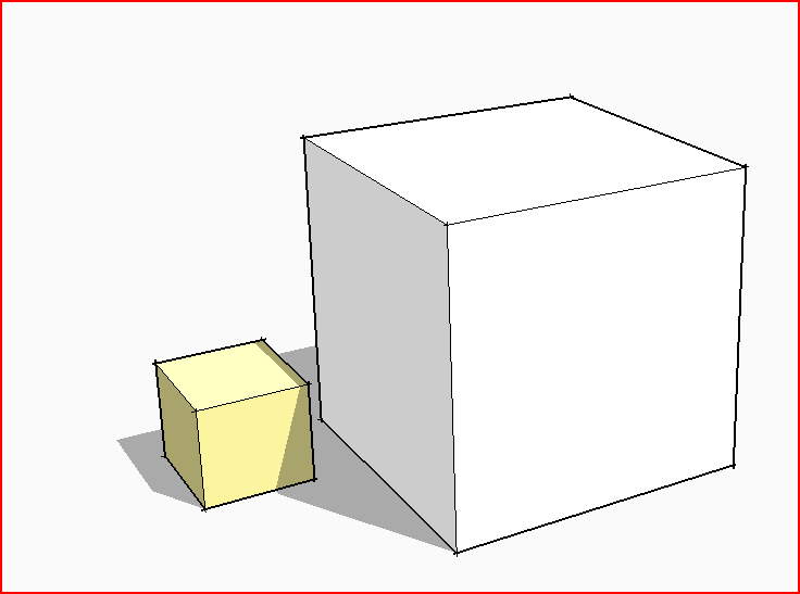 The reason there is always a 'Default_Material' [even if it doesn't appear to be used] is that every exported face needs a material - even if it doesn't have a material in the SKP. That material lists first as it's always the first material defined in the MTL. If you haven't given a face a material the 'default' is used in the SKP - as set in your SKP's current Style. Here I've made the default-front-face-material 'creamy'. The smaller cube has no material applied in the SKP and so in the OBJ and thence in the OCS it takes that creamy 'Default_Material'. The larger cube has the white 'color_000' material. If a material wasn't specified for a face I suspect that the OCS would render it in a 'black' material [0,0,0]. At least with this approach the OCS rendering looks like the SKP - e.g. if you have missed a material off a particular face, rather than a 'black-hole'...