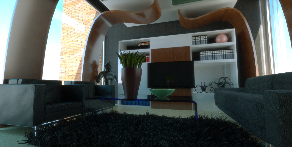 thanks for the coments yes actually the curved are low poly i forgot to smooth them i think it would see it smoothed if i put the enable smooth option, i think i put more books like with the same material i will quit some of them, im using the latest octane render version 2.52 the 2.55 is the test version so i will kept this version until the new relase come out, for the leather couches i think i have more bump map value still seeing noise in about like 1:30 hours of rendering, about the volume its ok for me it gets another style the only thing i see is sucking the volume from visual expectation not volume in size but i will kept that in mind. ;)
