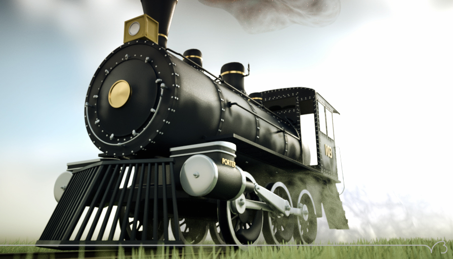 A week ago, a friend and I attended BlendIberia here in Madrid. There was a 2 day crash course in blender. Both wanted to learn Blender, yet 2.4 looks put as back each time. So we got in the course. The first day was an introduction to blender and basic modeling. Pablo, our instructor, chose an steam train as base for the trainning. It was great fun, and blender was just plain great. So this week I've tryed to learn more things and get used to blender. In my spared time I've grown on the few poly's we got to do at the course (there were so many things to see that there was no time to model, hehehe), I've use a similar picture for reference. It a double first, my first blender model and my first vehicle, also I'm using it to practice smoke and fog in Octane. I'm thinking on using it for the contest adding more stuff and using instances... we'll see. Meanwhile I hope you like it.