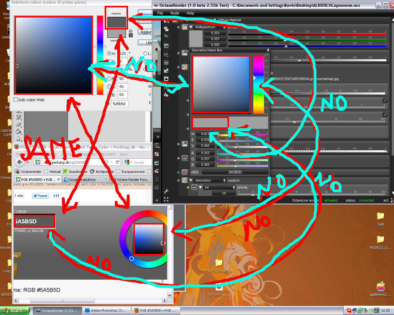 There is no correspondence between the octane RGB colors and the same RGB in photoshop or other sites that specialize in color (http://www.perbang.dk/rgb/5A5B5D/).