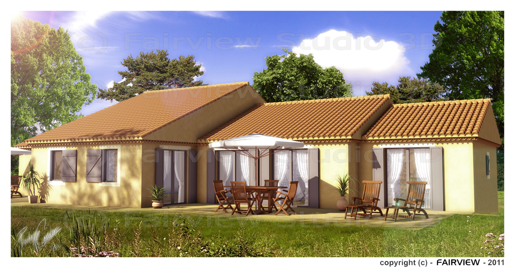 2) I did 2 renders : one with the house, one without (only the grass)