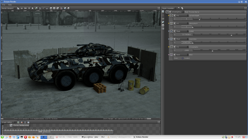 Post production :remove fireflies,blured the reflected glass ,because octane is not able to give you clear reflection and transperancy<br />at the same time, not even with the highest settings possible.<br />render time :3hrs 35min
