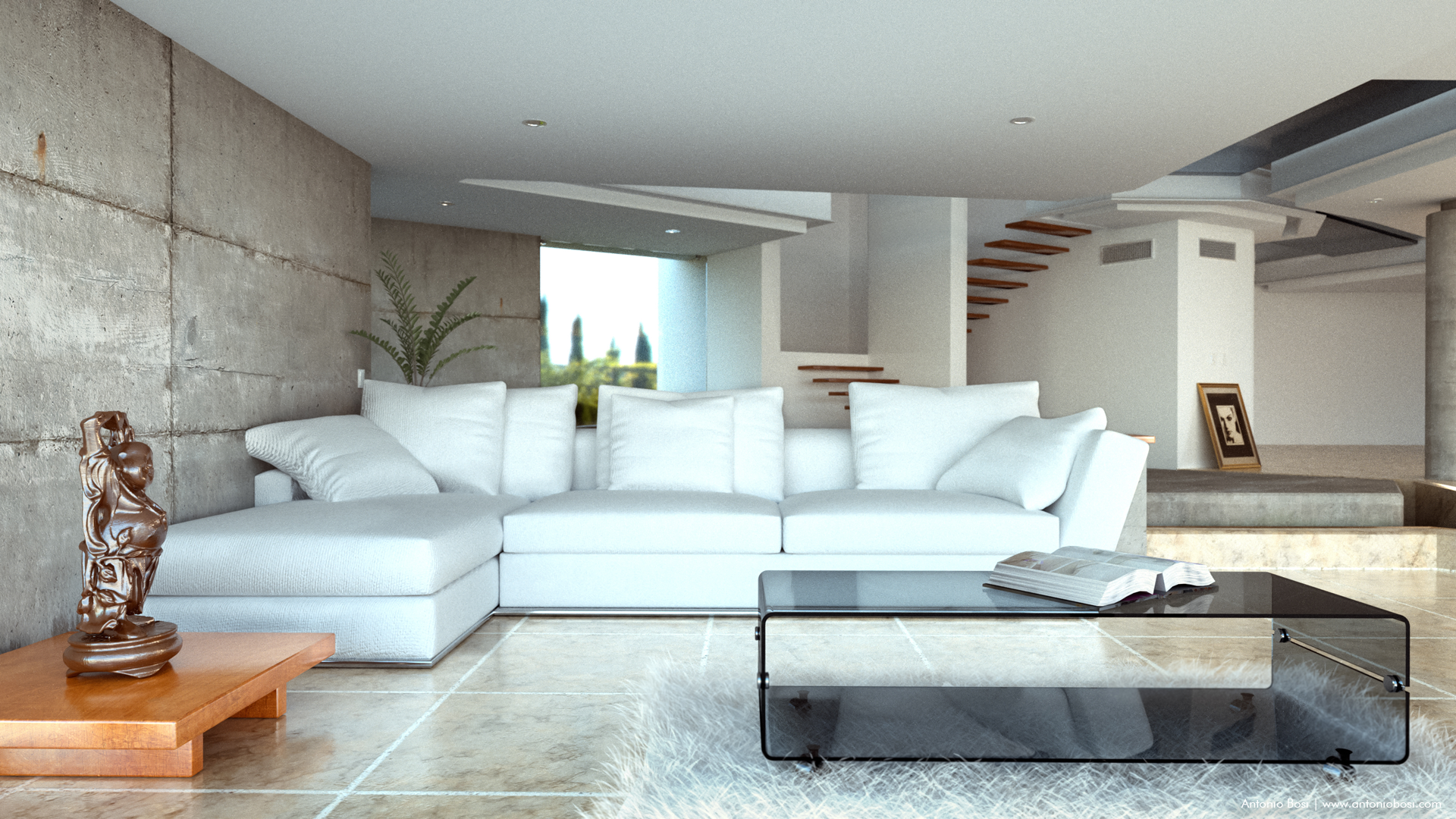 La scena conta 1.539.616 poligoni, ogni render è stato finalizzato in circa 2/3 ore, risoluzione originale 2800x4400 pixel ridotti a 1400x2200 pixel.