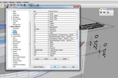 I know little about scripting, so thought I would be using a keyboard shortcut to invoke these commands so I used the o6 and so on not realising the way you link this stuff together. Works fine now and I've learned something about how clever this sort of stuff is. Thanks a ton, I'll try and not bug you for a while at least... How does stuff like this get broken with Rhino updates? Forget it, I'd never understand... Hope they are aware at McNeel. I just tried an old script for 'BoxFrame' and get the same sort of errors so I guess it isn't just your scripts affected. Your the best hope for the Rhino/Octane link, have any of the other guys that have expressed and interest made any progress?