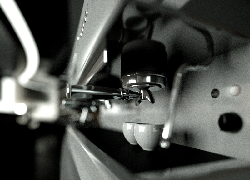I wondered, On the first scene image (not the coffe machine), How did you get the monochromatic look on the whole pic except the floor. This seems to have color? Photoshop or in Octane.