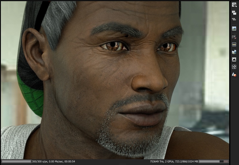 The renders are perfect, the skin looks awesome, only the aged one look kind of creepy, like a prematurely aged young man, I guess it has to do that the wrinkles look believeable but the face structure is of a young man, or the eyes... not sure, but that's just me, they are great!