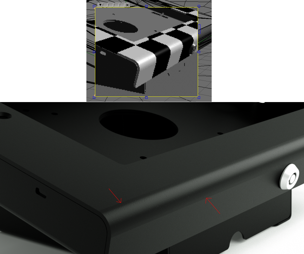 I'm sure this is a common issue with a common fix, but I can't seem to figure it out. I have a UV projection as shown in the screenshot. I cannot figure out how to make that radius have a smooth transition in the rendering (see the red arrows)
