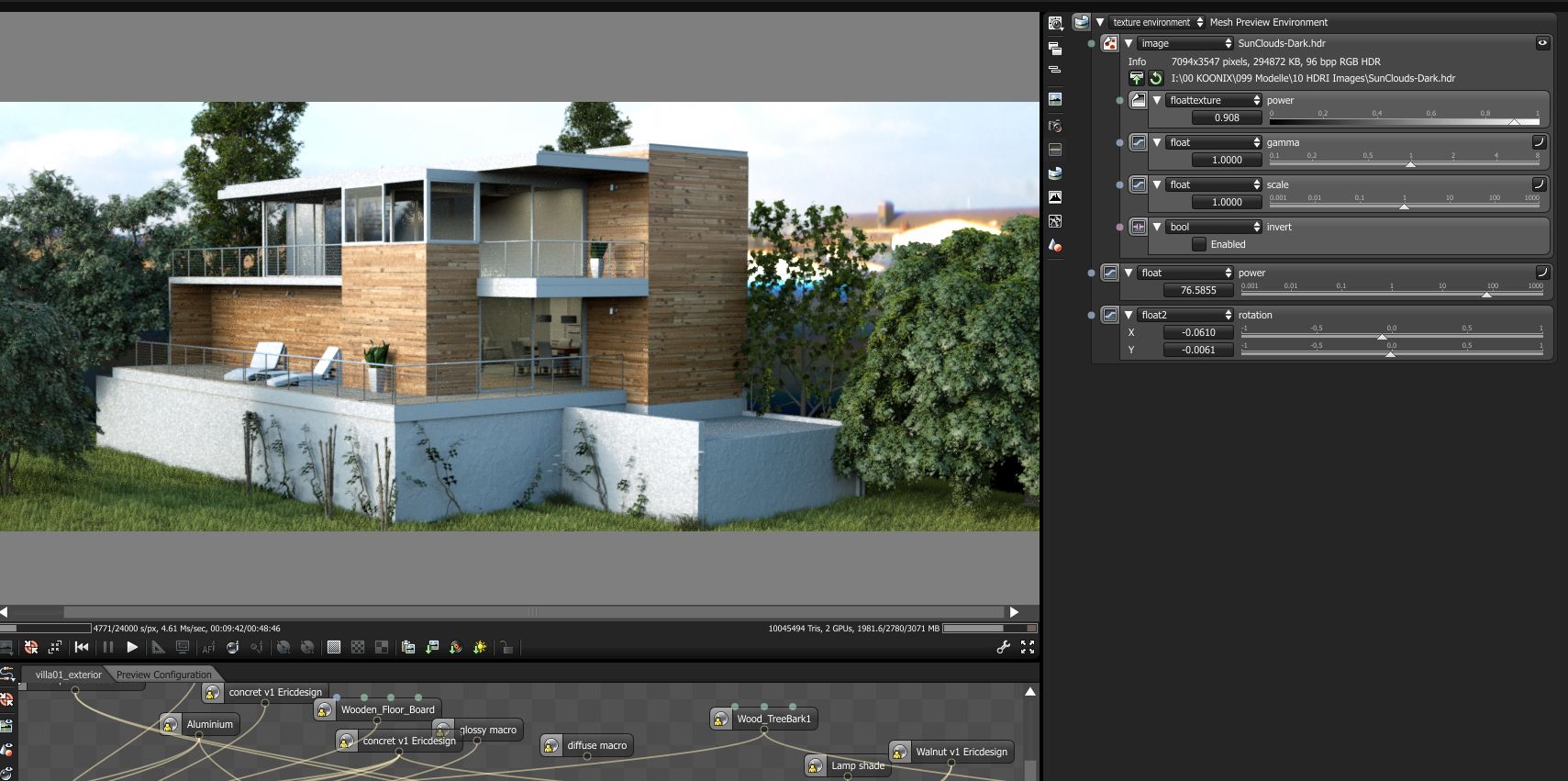 As you can see in the picture, I think the shades the HDRI Image should throw on the house is not as it should be.