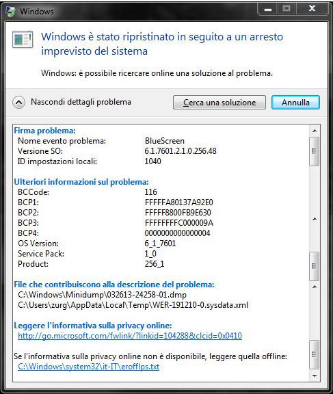 I've attached a window's print screen with problems informations (sorry it's in italian)