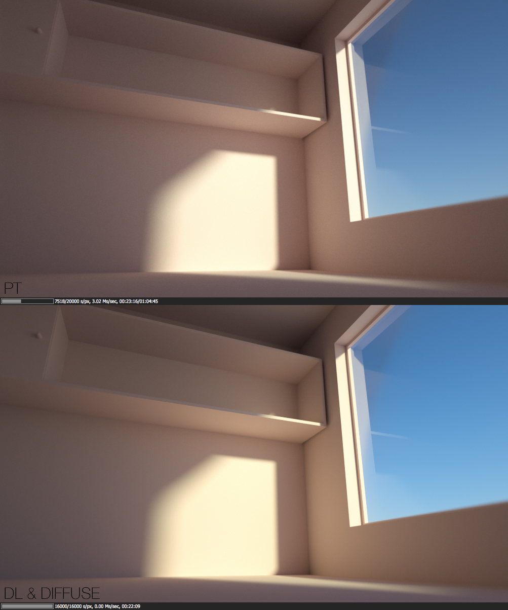 The hardest thing for a render engine is a room with one window,