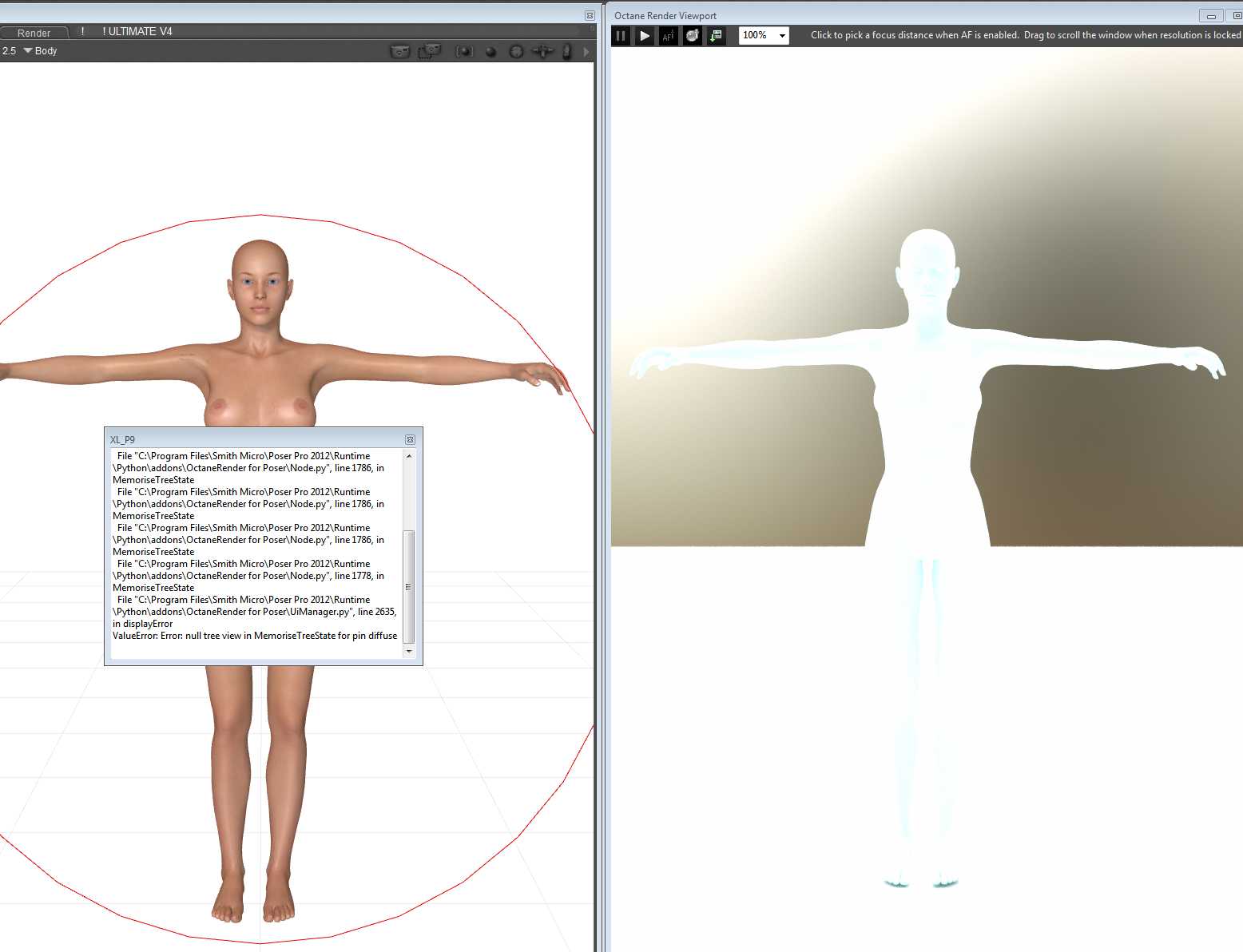 File "C:\Program Files\Smith Micro\Poser Pro 2012\Runtime\Python\addons\OctaneRender for Poser\Node.py", line 1778, in MemoriseTreeState