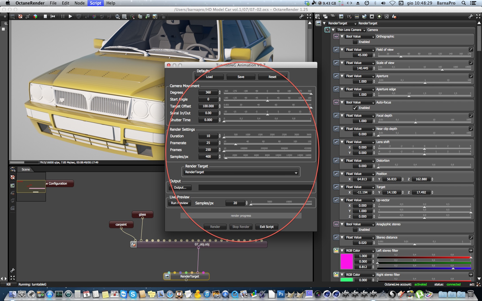 the problem i am having or the way i am trying to use them; and there may be another node for this that i dont know about; is much like a material macro. when you open it you have your nodes in it, but on the main scene tab you only see the one. i would like to do this with cameras... this way all render targets would connect to the one camera node, then to change the camera i would do that within the macro; just like if you wanted to change a material, just reconnect 1 inside the macro rather than in my case 3 connections every time i update a camera.