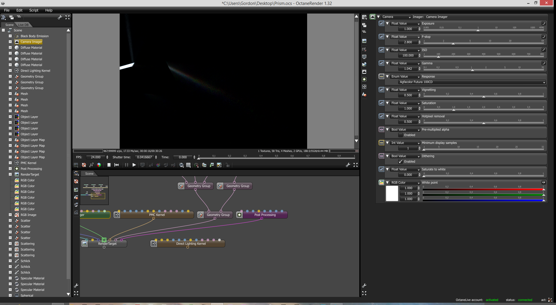 Hi Gordon, Thanks for sending the file, unfortunately it's only the scene file without the objects so it wouldn't open. Presumably, because it's a LW project the LWS and LWO files would be sufficient. I've not used LW with Octane yet (I'm still learning the standalone) so I don't know whether you have to go through any special saving options.gordonrobb wrote:Here you go. It's an export from Lightwave so I've no idea what all those nodes are