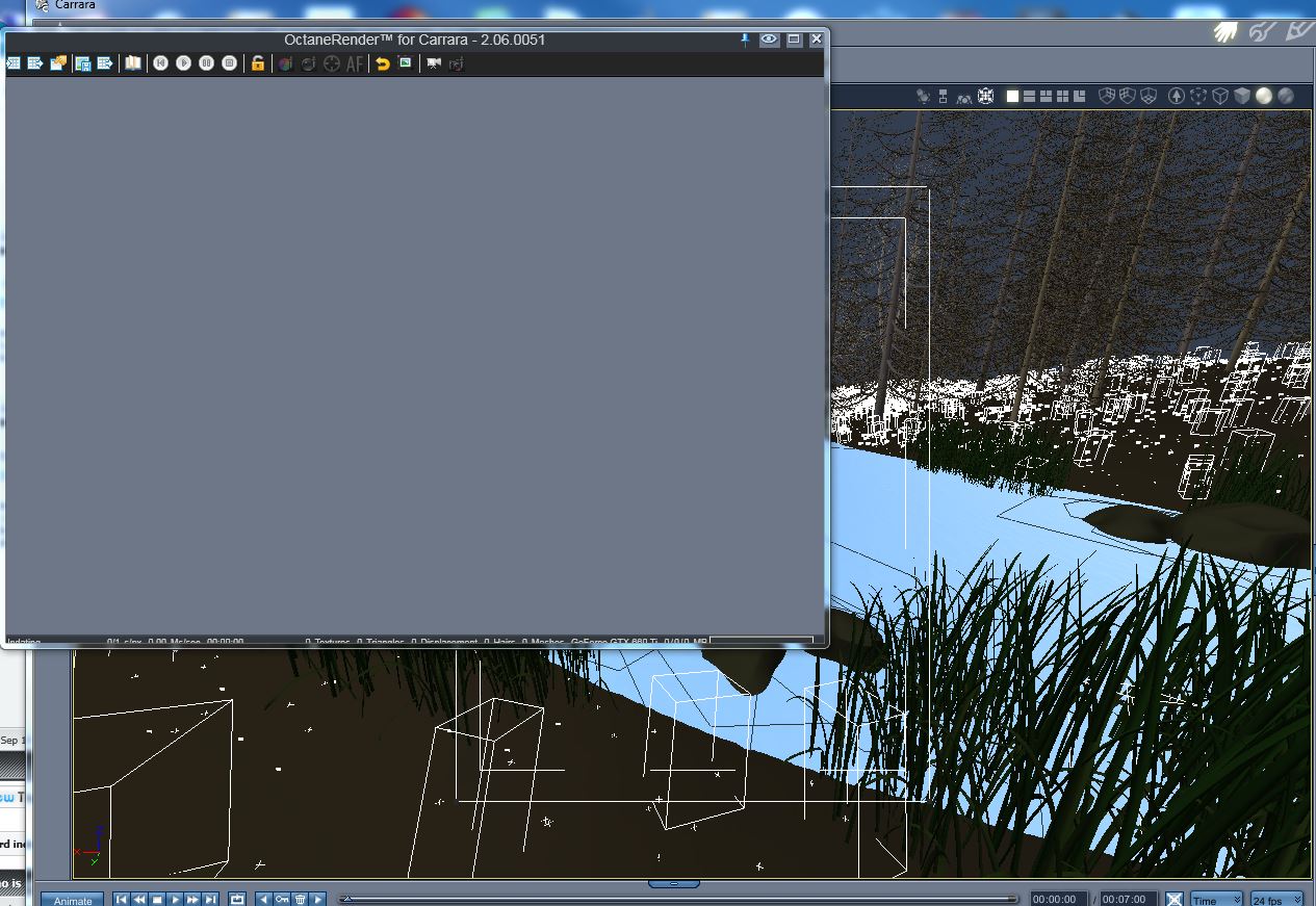 I have cleared Carrara's cache folder. The system has 16GB RAM a GTX-480 1.5GB and a GTX660Ti 3.0GB this is what happens when I load Howie's scenes into Octane.