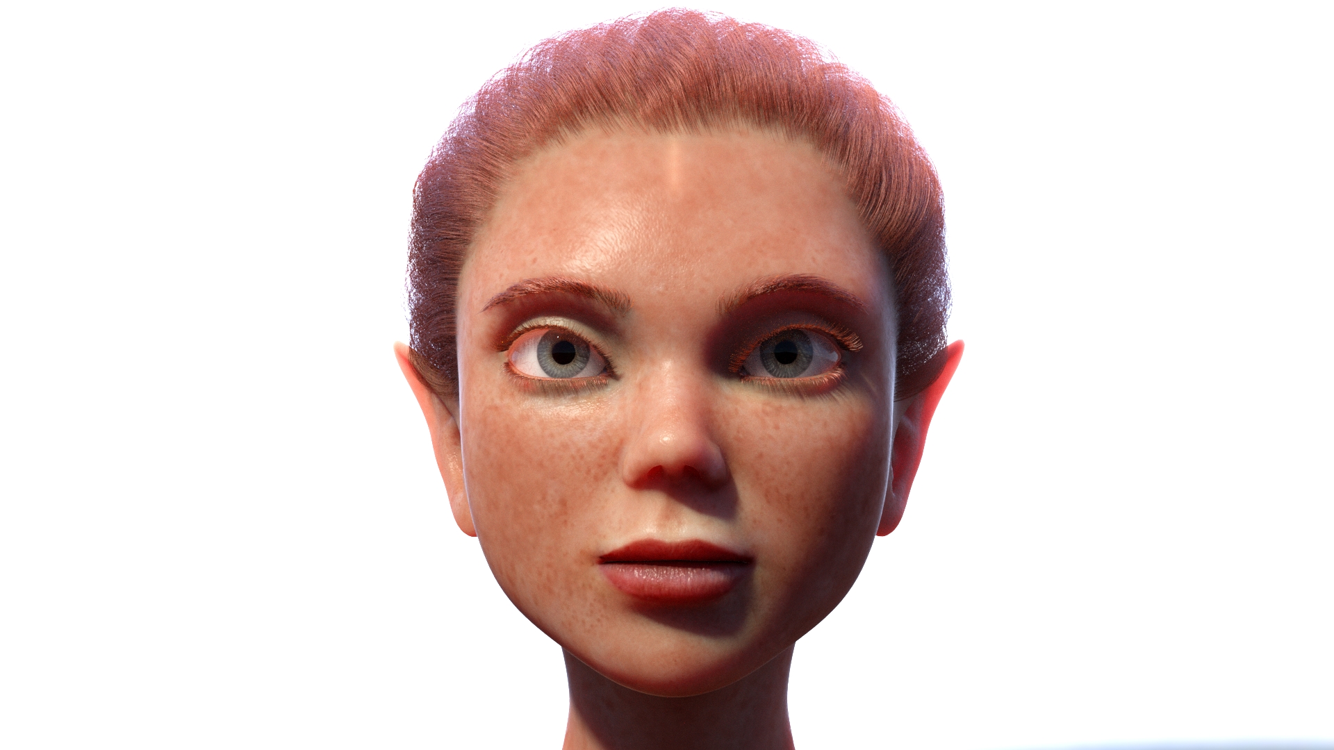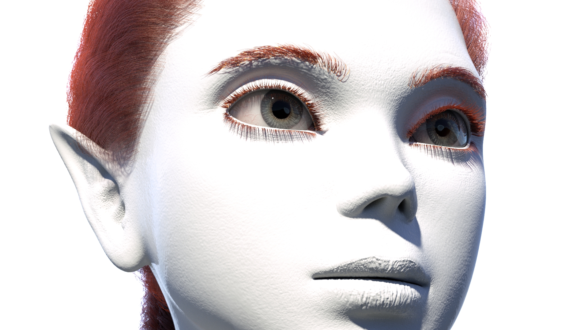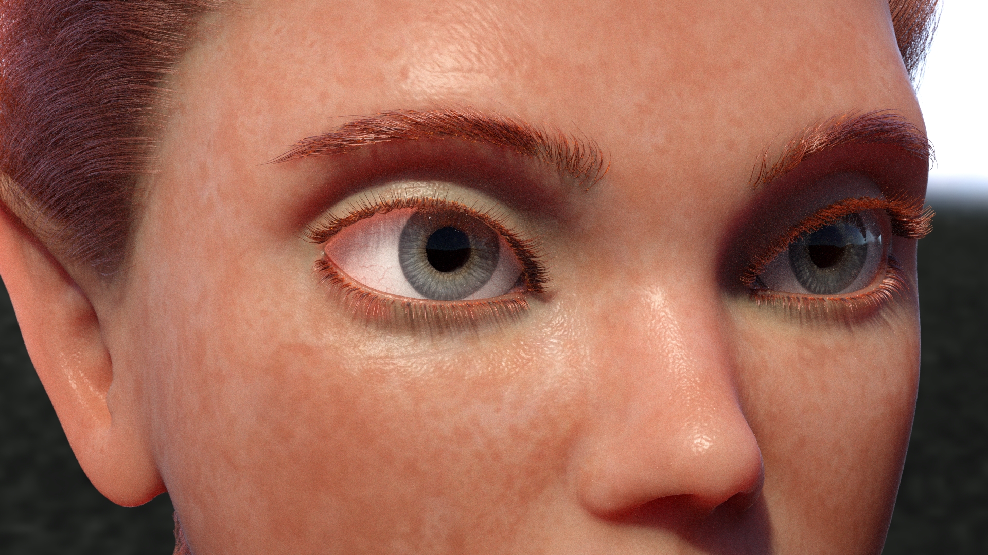 Hair, eyebrows and lashes are Maya hair rendered with Octane Hair.