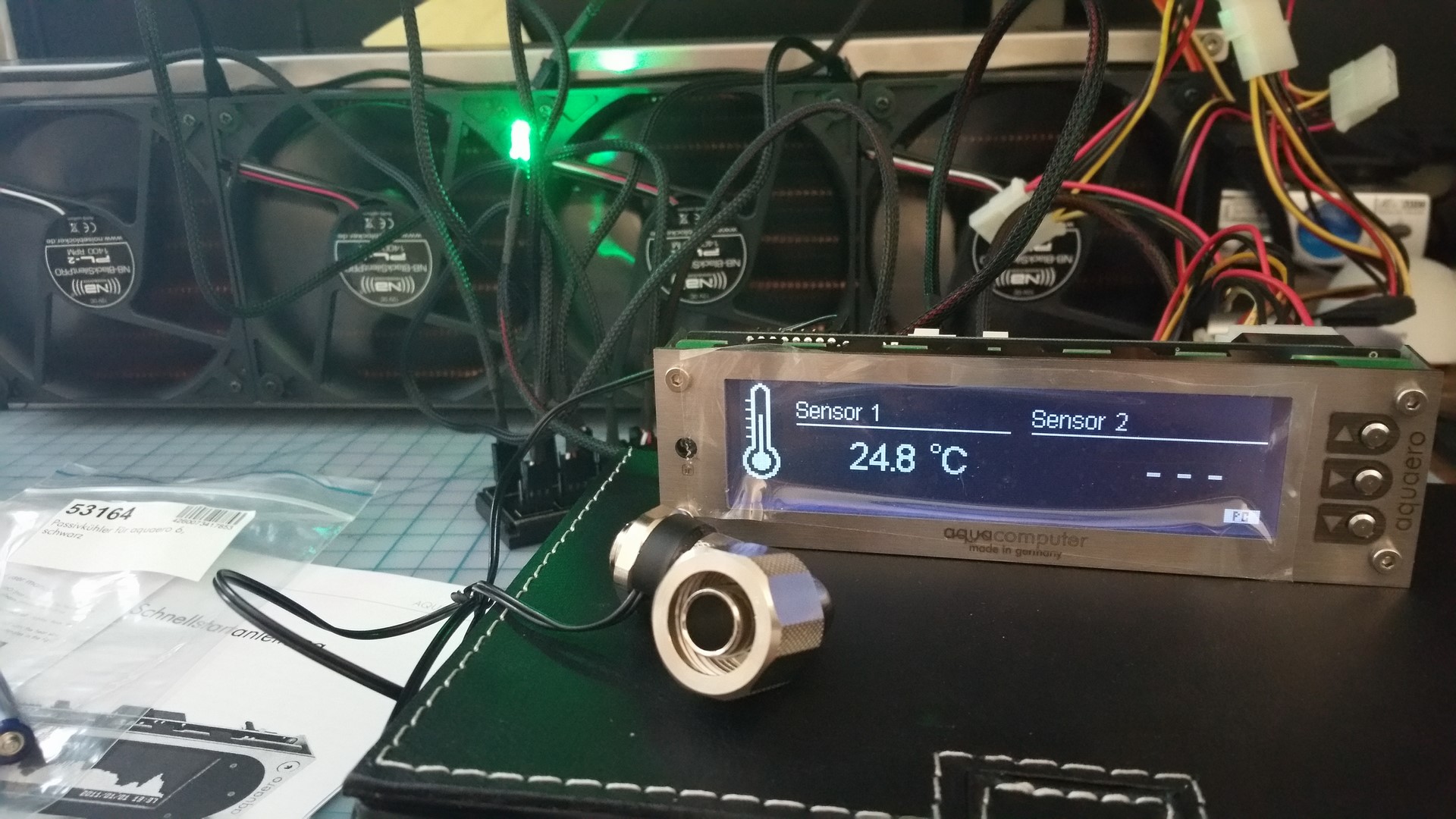 Here are some pictures of my investigation with aquaero and the rads+fans. On this subject, Smicha, how did you plug yours?