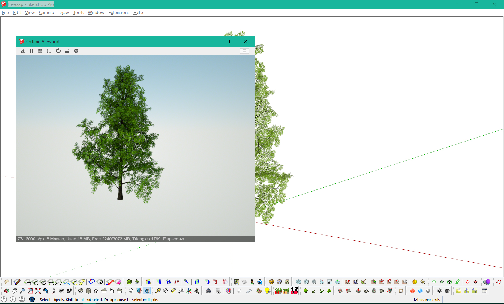 - On the SketchUp window I move the scene around and the octane viewport then follows my cursor movements.
