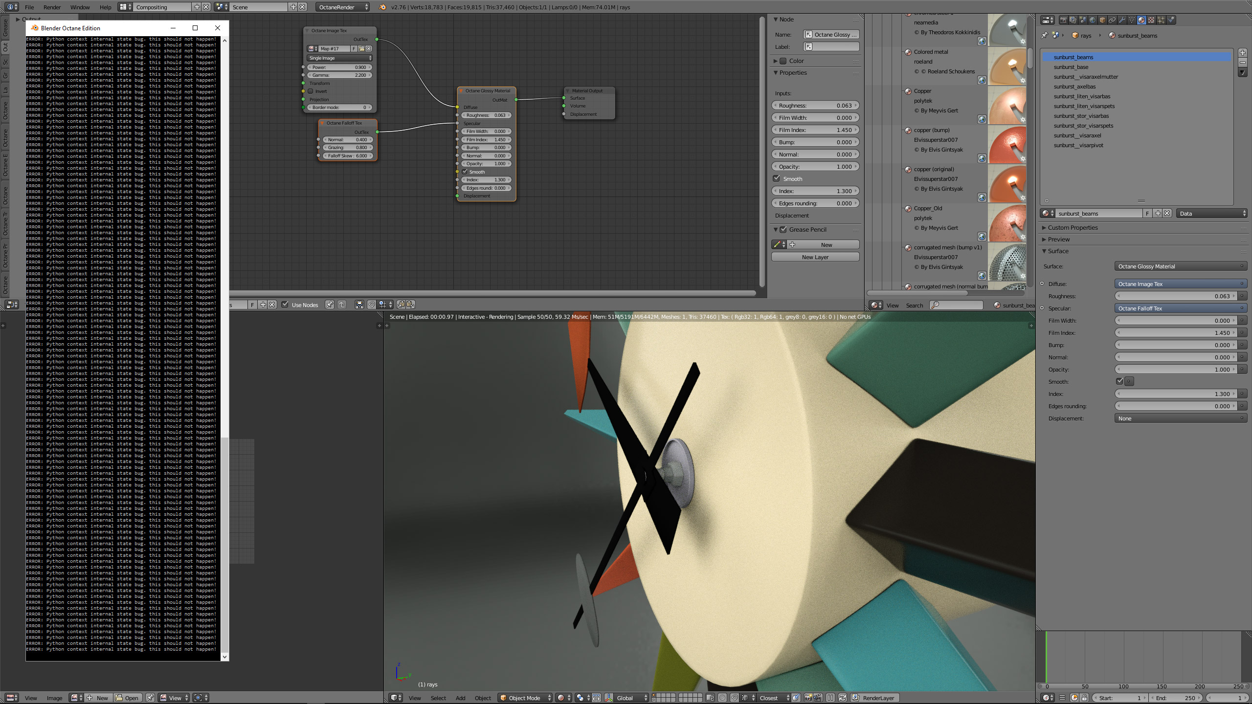 Update: Jim, this one seems to be related to our favorite texture problem. And this time it is reproduced in a very simple scene which might make it easier to figure out, if you don´t already have an answer. This is an fbx import in to an empty blender scene. In the outliner I unlink all textures from materials that comes with the fbx-file. I then delete all orphans. I now have a clean mesh and file that should give me no issues. And that was true until I imported a bronze material from the online database. First time I got the attached error message. Then I found an orphaned image that some how survived my clean out (I have noticed that some times you have to delete orphans twice). SO, I deleted that image, and then I tried to import the online bronze material again. This time when rendering (preview rendering) I get the same error message that I have reported before with the "....error transferring the refreshed texture file to the server...".