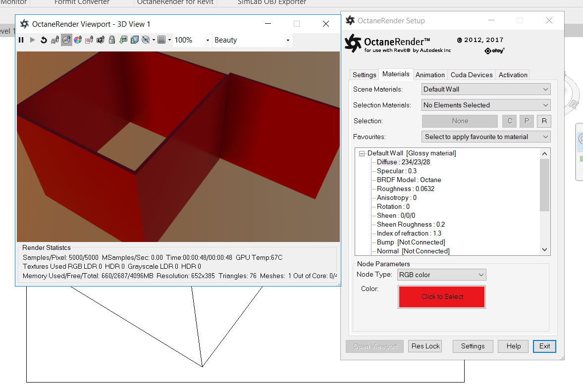 I said to change the wall to red does not mean to change the color in octane render's material in the main.rvt, I mean to change the revit material's color in the 0.rvt (base my previous uploads),in the latest upload this is already done, so you do not need to change the wall's color anymore...sorry for the confuse