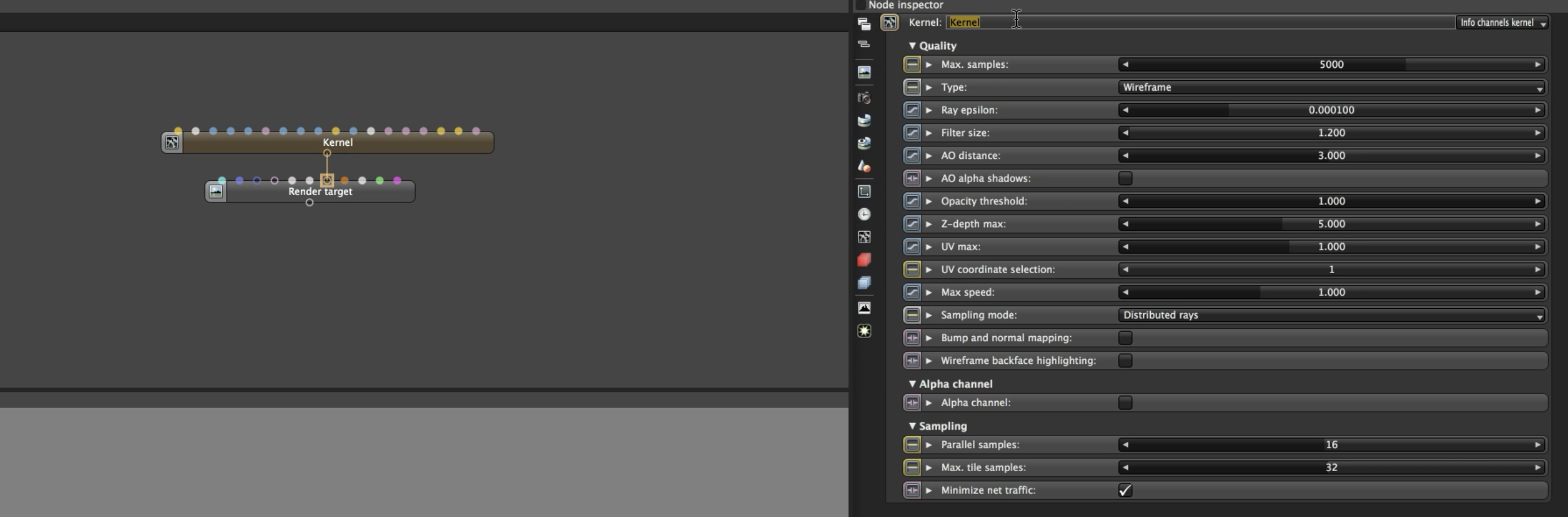 In the particular case of the Kernel node, if no Kernel node are connected to the Kernel pin, internally or externally, the pin is empty, but the rendering is in wireframe mode (we have to enable at least one type of kernel by default, or the render target stay gray).