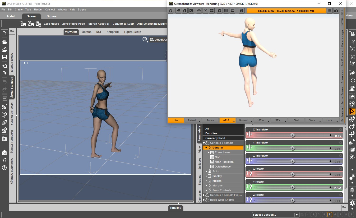 Finally managed to create a scene with basic G8F character and a pose that will always show wrongly at the Octane Viewport when the render starts. Only if Rebuild scene is done, will it correct. Reload forced and Reload on demand does not correct it.