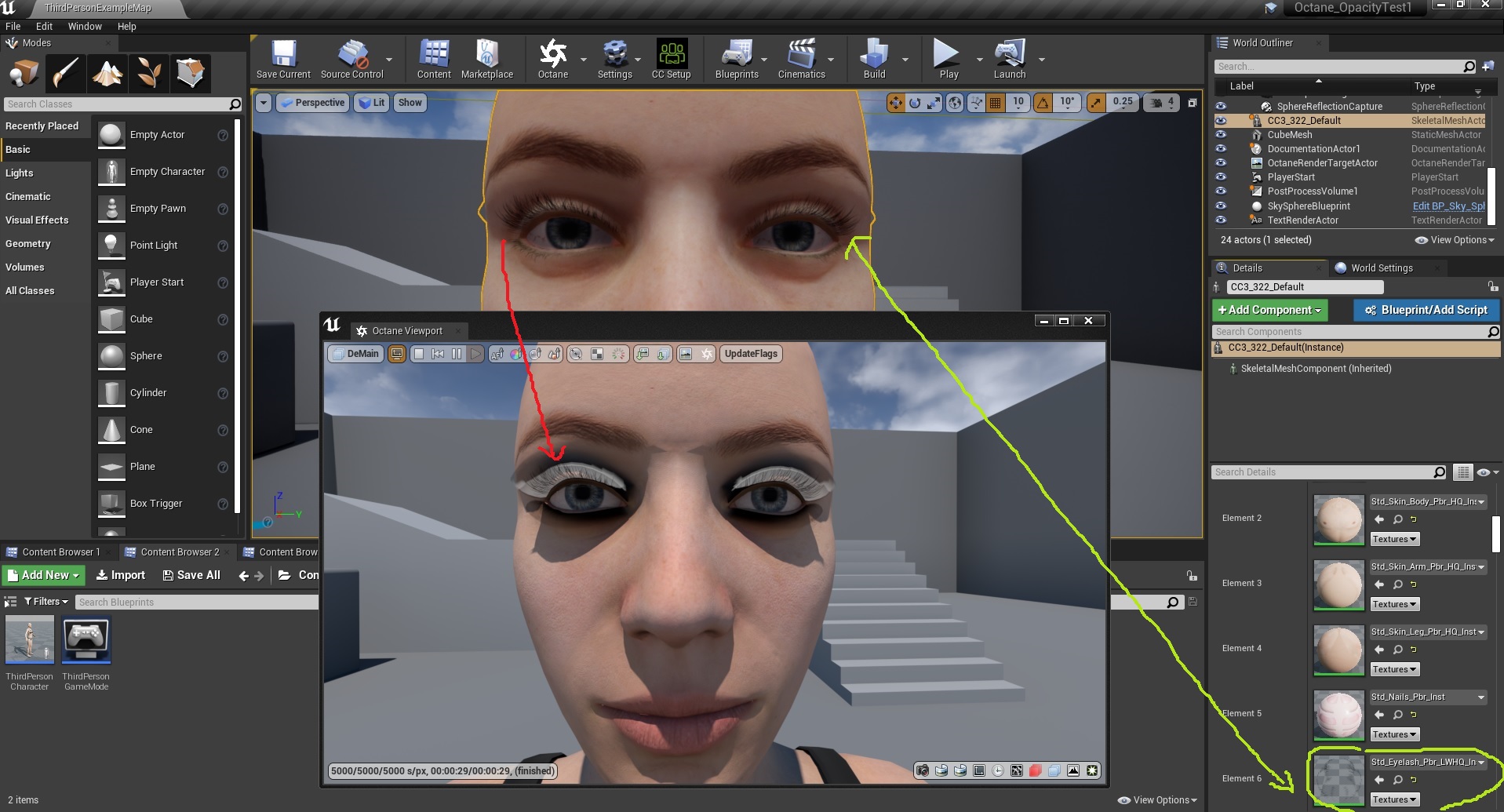 It looks like Octane .33 has issue with opacity textures on characters run through UE4.