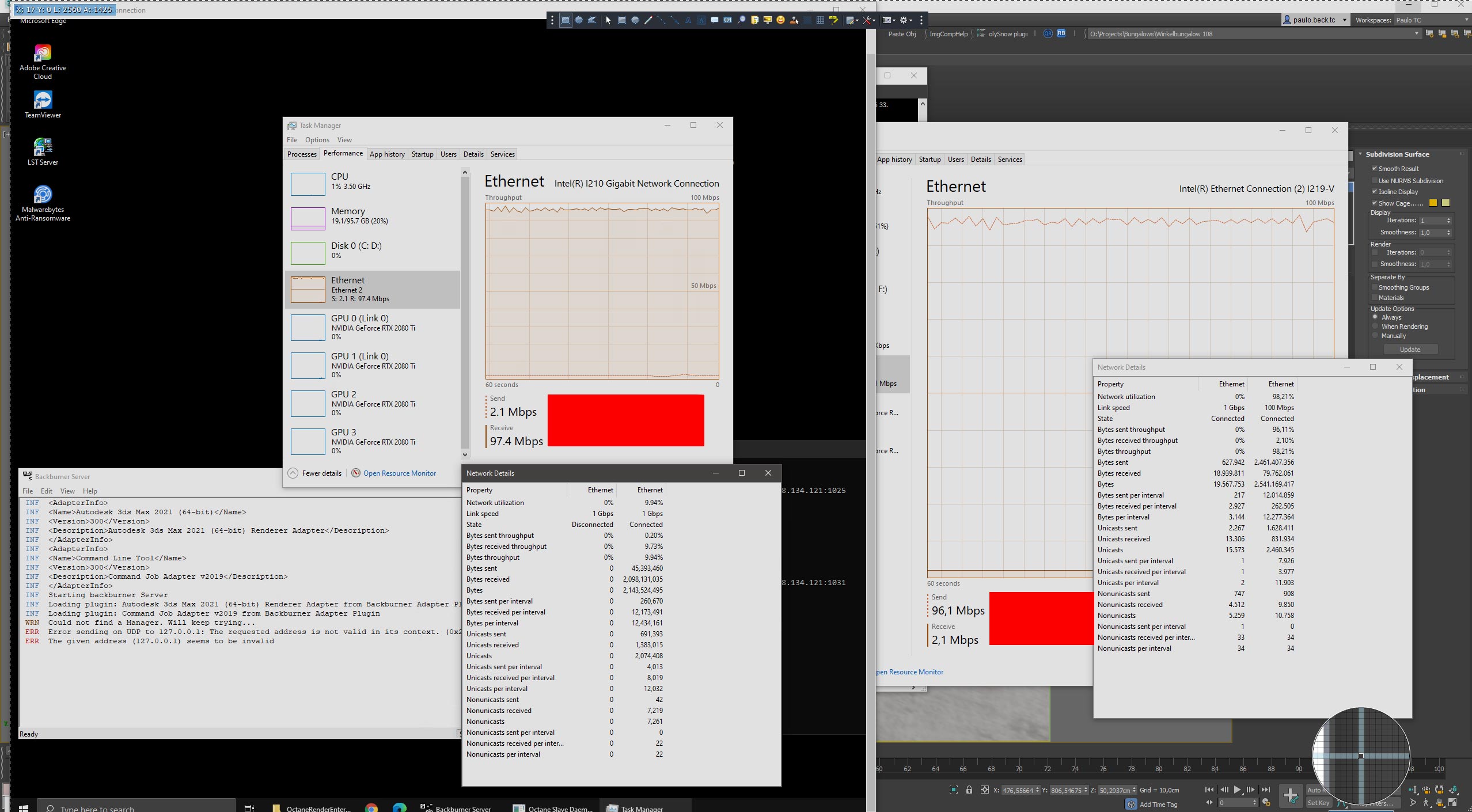 During the day I noticed that the server was starting to render much faster and the cuda erros are gone and on top of that, I installed a 10gb network card on my workstation.