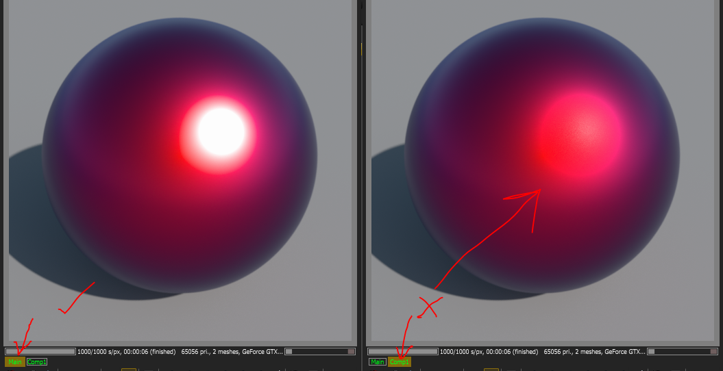 2. Swap between the "main" and "comp1" passes