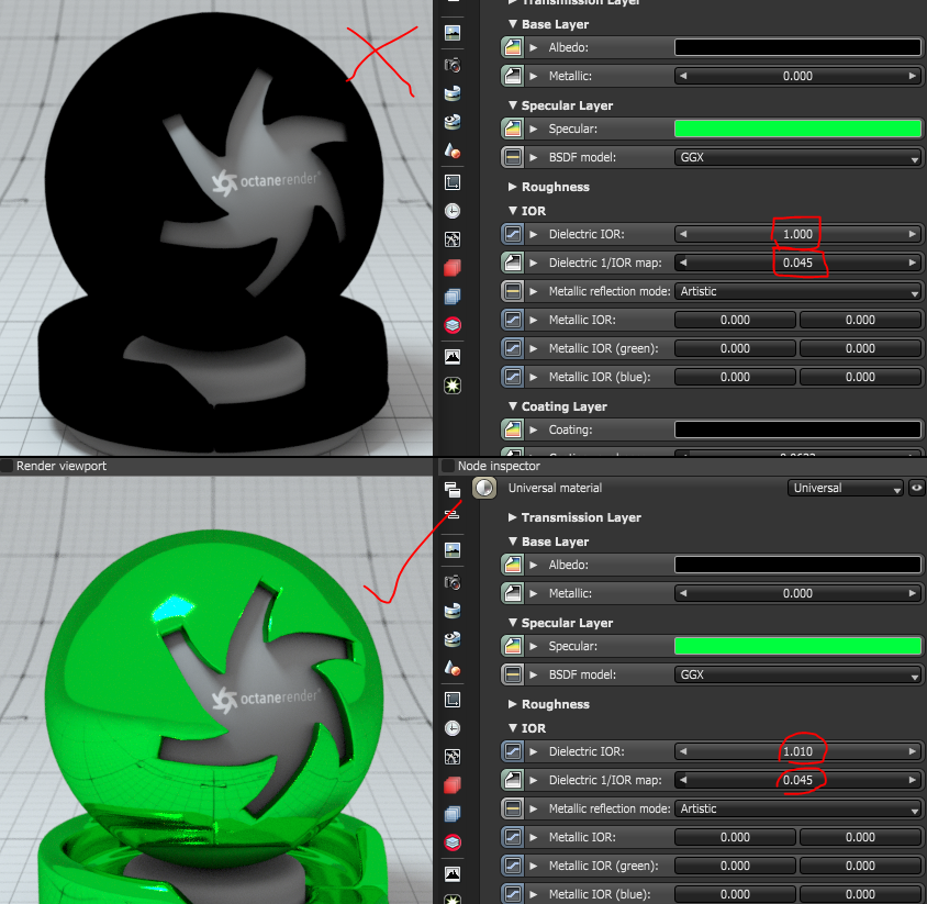 BUG: Universal Material dielectric 1/IOR map doesnt work if dielectric IOR = 1