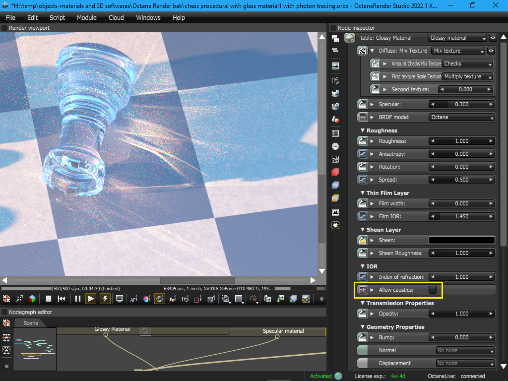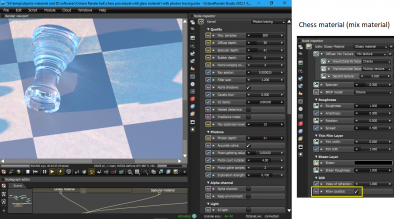 - wrong caustics (less visible) on mix material with “allow caustics” checked like chess material But normal without "allow caustics" on mix material: -> "Chess Procedural with glass material with photon tracing" ORBX download -