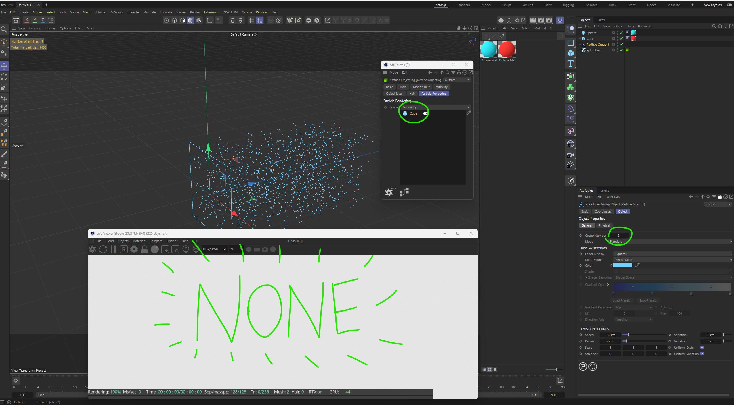 X Particles "Render Geometry" doesn't work when use GROUPS