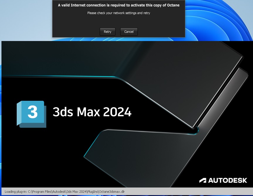 Is the second time when I try to open the program and fail the OctaneRender plugin v2023.1.2 - 14.8, I don't know if is a problem of server or update by windows 11.