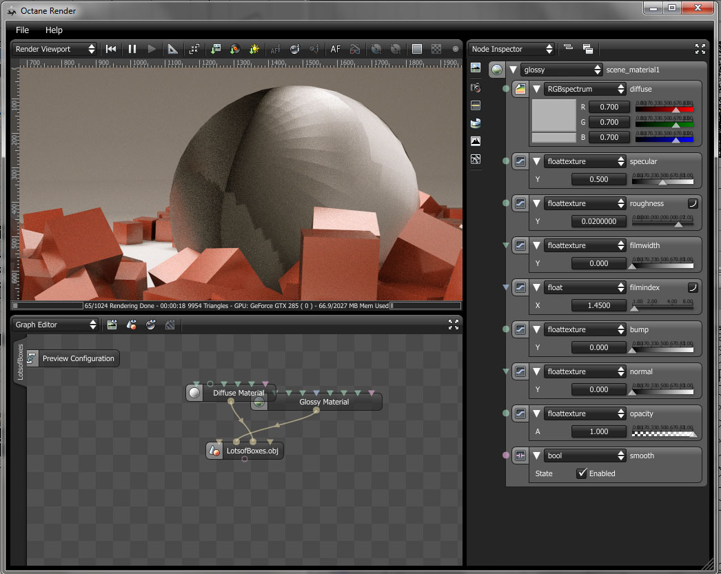 I agree and I'm getting nasty shading/reflection errors if I turn the smoothing on this material.adrencg wrote: What about the non-smooth look of the sphere? I've been getting this also. Do we have to use millions of polys to make round objects look smooth in Octane? A bad workflow issue for the exporter is that I have to convert my subD models to polygon, but even then, I'm not making nearly enough poly to get a smooth look.