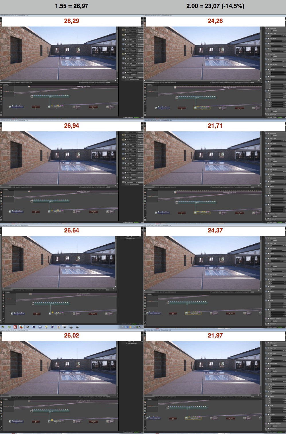 the test is done with Direct light kernel in AO mode since in the Path Tracing and PMC kernel there is a new parameter for "Specular depth" that is not present in the 1.55.