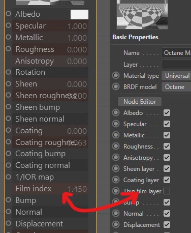 Excluding Thin Film Layer from material attribute manager still leaves Film index parameter in Node Editor :